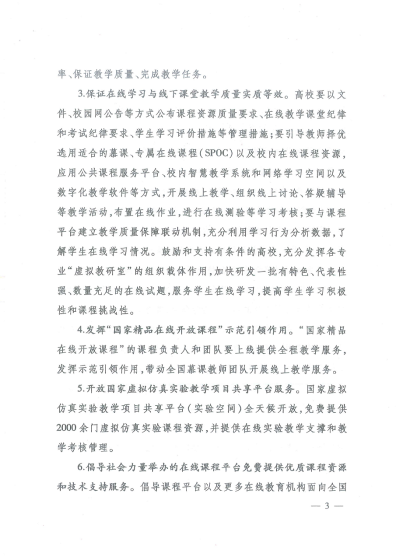 教育部做好普通高等學校在線教學組織與管理工作的指導意見
