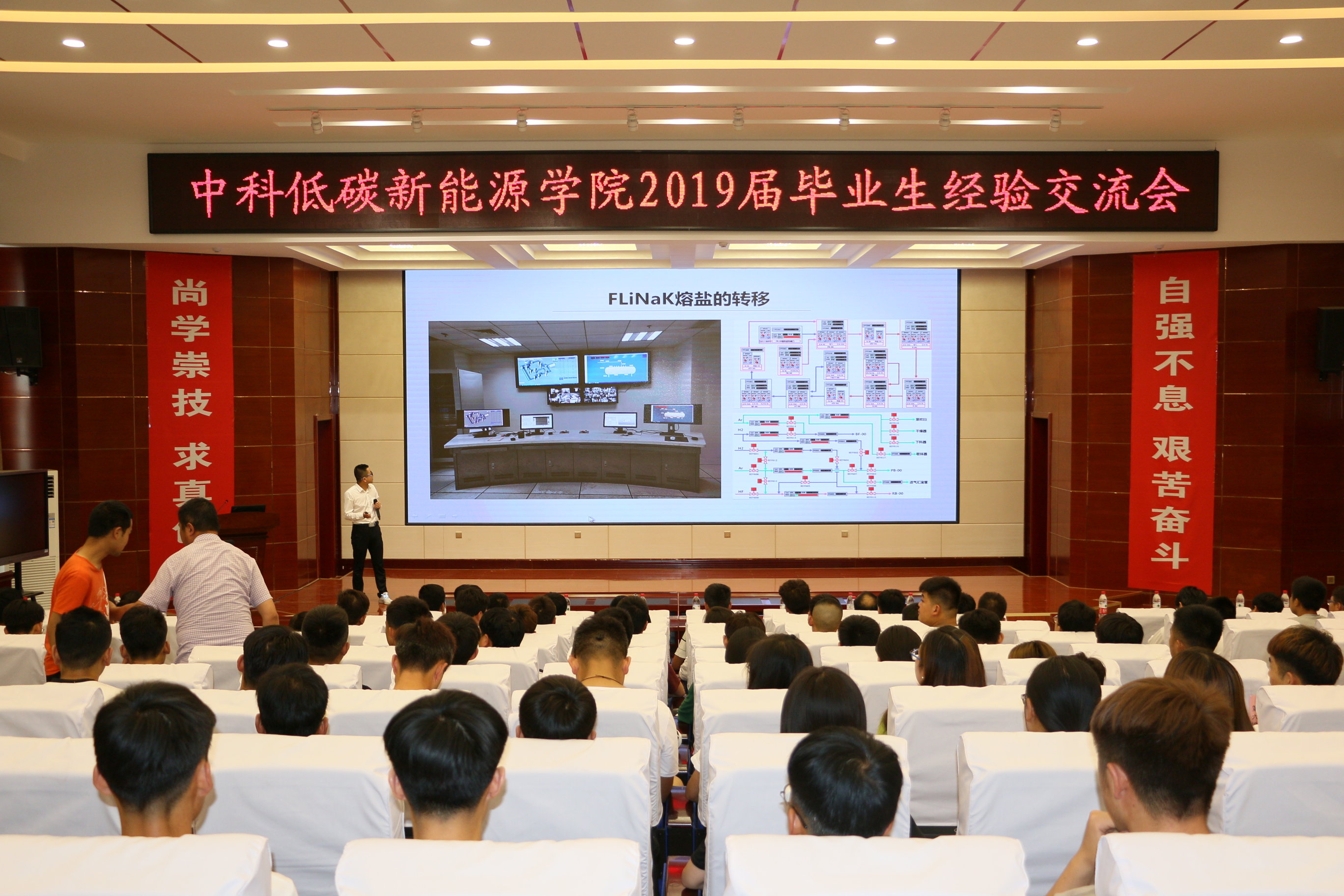 7月4日下午,中科低碳新能源技術(shù)學(xué)院在大學(xué)生活動中心菁英廳舉行優(yōu)秀畢業(yè)生實習(xí)經(jīng)驗交流會,能源工程系17級全體同學(xué)、機械系17級全體同學(xué)及中科低碳新能源技術(shù)學(xué)院全體師生參加此次會議。此次報告會由中科低碳新能源技術(shù)學(xué)院副主任黃述杰副教授主持。