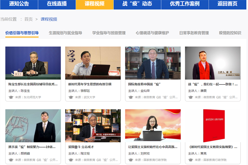 為推進(jìn)當(dāng)前教育系統(tǒng)疫情防控和學(xué)生思想政治教育工作,由教育部主辦,高校思想政治工作隊(duì)伍培訓(xùn)研修中心承辦的“共抗疫情顯擔(dān)當(dāng),愛(ài)國(guó)力行育新人”全國(guó)高校輔導(dǎo)員網(wǎng)絡(luò)培訓(xùn)示范班開班。