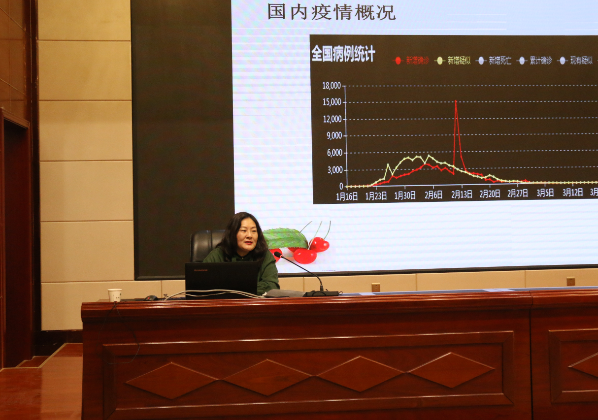 馬艷主任以《新冠肺炎疫情防控》為題,從國(guó)內(nèi)外疫情分析、對(duì)新冠肺炎的認(rèn)識(shí)、大專(zhuān)院校新冠肺炎疫情防控要求措施以及開(kāi)學(xué)后應(yīng)該注意哪些問(wèn)題等幾個(gè)方面做了深入講解。