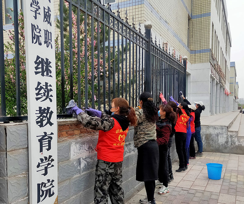 為扎實(shí)開(kāi)展“三整治”“三提升”行動(dòng),有效改善城區(qū)環(huán)境,進(jìn)一步提升校園品質(zhì),建設(shè)文明校園,助力全國(guó)文明城市創(chuàng)建,為師生返校創(chuàng)造干凈、整潔、衛(wèi)生的學(xué)習(xí)工作和生活環(huán)境。按照涼州區(qū)城市管理委員會(huì)通知,結(jié)合學(xué)院實(shí)際,4月15日起,學(xué)院后勤處經(jīng)過(guò)排查,組織教職工及保潔工作人員全面開(kāi)展校園“清潔亮妝”行動(dòng)。
