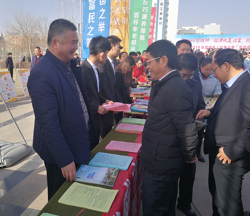 3月10日上午,武威市2019年“科普之春”活動啟動儀式在武威文化廣場舉行。市人大常委會副主任張承潛、市政協(xié)副主席王平基等出席啟動儀式,學院100余名師生參加了活動。