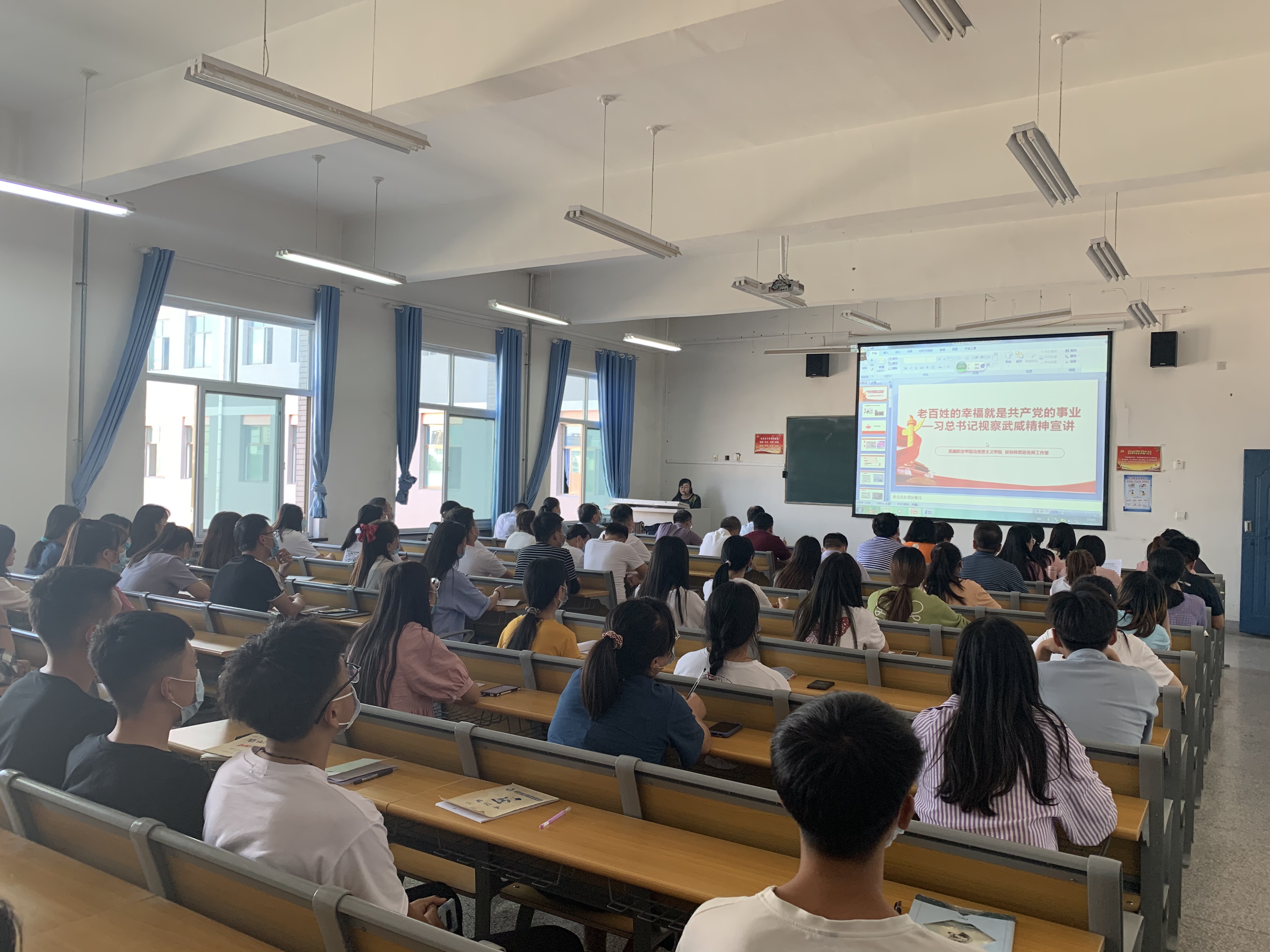 為深入學習貫徹習近平新時代中國特色社會主義思想,落實《中共武威職業(yè)學院委員會關(guān)于開展“1+6”理論政策宣講活動的通知》精神,6月23日下午,醫(yī)學技術(shù)學院邀請馬克思主義學院副教授王靜以“老百姓的幸福就是共產(chǎn)黨的事業(yè)—習總書記視察武威講話精神”為題,在明遠樓311室為我系全體教師、學生代表做了專題理論政策宣講。