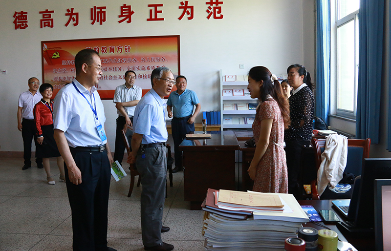 調(diào)研組一行深入馬克思主義學(xué)院實地查看建設(shè)情況,與老師進(jìn)行親切交談,參觀翟存祥名師工作室,查看檔案資料。調(diào)研組隨團(tuán)教學(xué)名師張媛副教授隨堂聽取了我院胡洋老師的一堂思政課,并上了一堂思政示范課,進(jìn)行了現(xiàn)場教學(xué)交流,對我院教育教學(xué)改革提出了寶貴意見和建議。
