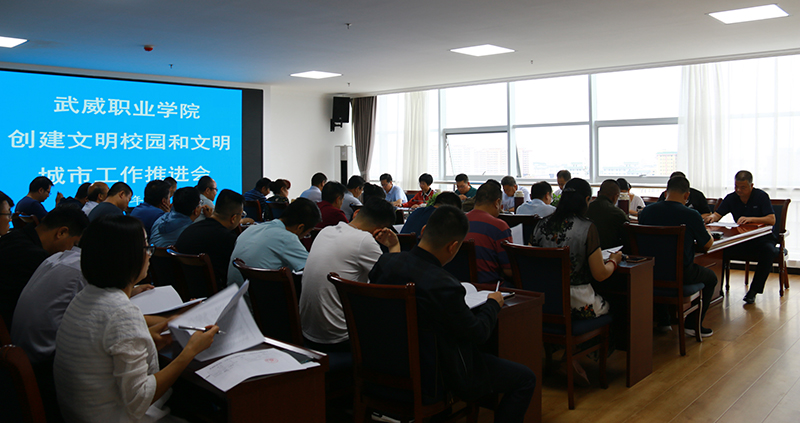 推進會上,何毅通報了市創(chuàng)城辦、教育局創(chuàng)城辦對學院創(chuàng)建文明校園和文明城市工作督導檢查、實地考察情況和學院檢查情況,并安排了整改工作;陳曉煜宣讀了《武威職業(yè)學院創(chuàng)建文明校園及創(chuàng)建全國文明城市工作責任追究辦法(試行)》,并做了說明;趙明圍繞學院文明校園和文明城市創(chuàng)建工作做了講話。