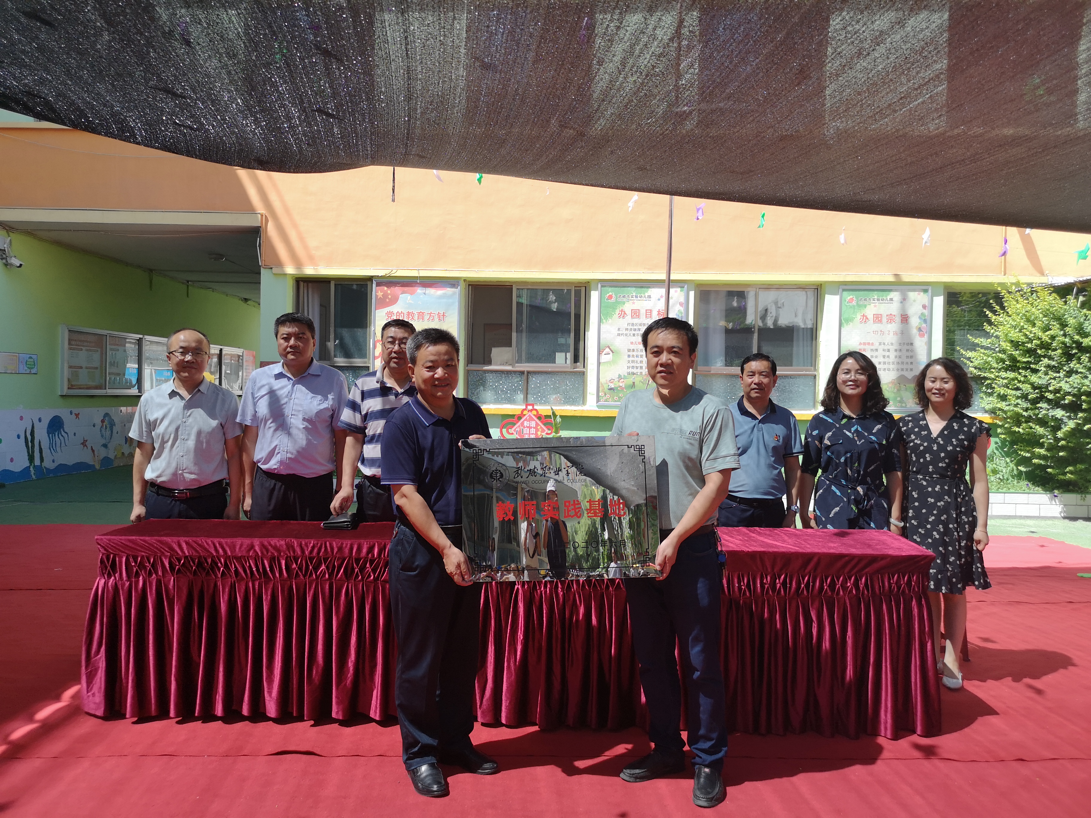為了加強(qiáng)學(xué)前教育骨干專(zhuān)業(yè)建設(shè),提升學(xué)前教育師資隊(duì)伍素質(zhì),使教學(xué)與幼兒園實(shí)踐緊密結(jié)合,實(shí)現(xiàn)優(yōu)勢(shì)互補(bǔ)共同發(fā)展,7月22日下午,武威職業(yè)學(xué)院分別在武威市實(shí)驗(yàn)幼兒園、涼州區(qū)和平愛(ài)彌兒幼兒園進(jìn)行教師實(shí)踐基地揭牌儀式。