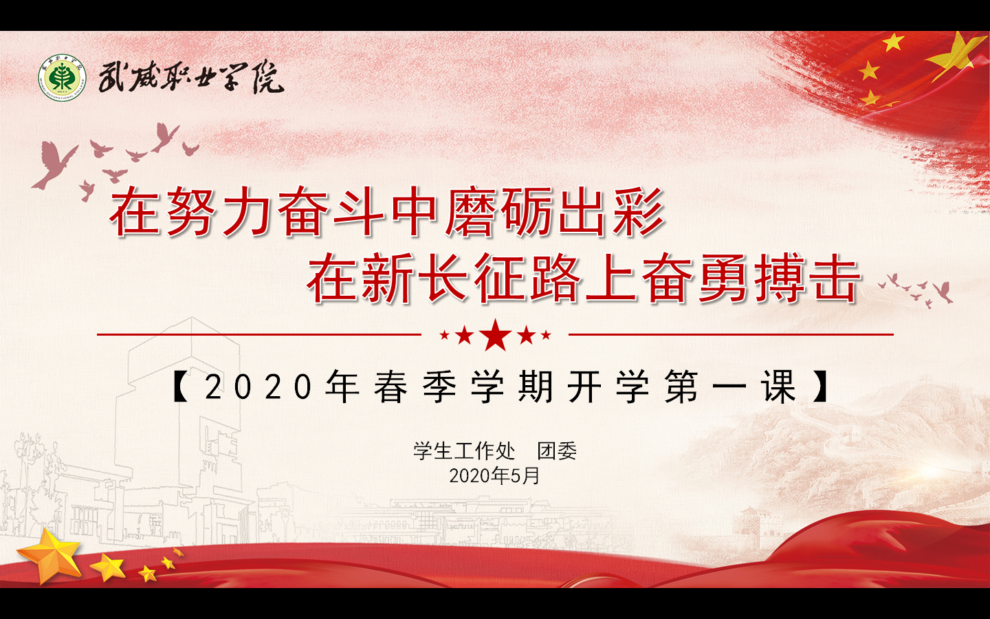 ? ? ? 通過同上“開學第一課”,引導學生對黨和國家在本次疫情當中做出的果斷決策,以及廣大醫(yī)務工作者和其他各條戰(zhàn)線的工作人員所做出的努力進行了回顧。對于疫情防控的相關(guān)知識,包括個人衛(wèi)生消毒,個人防護等工作進行了知識普及。對學院封閉式管理期間的各項規(guī)章制度以及教學秩序等工作進行安排部署。對于封閉式管理期間學生的心理健康以及自我調(diào)試進行了簡單的指導。