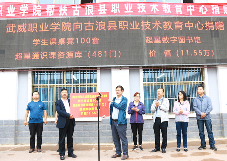 捐贈儀式上,張開禮代表學(xué)院致辭,向古浪縣職業(yè)技術(shù)教育中心捐贈100套學(xué)生課桌凳、超星數(shù)字圖書館、超星爾雅通識課資源庫,價值11.55萬元。