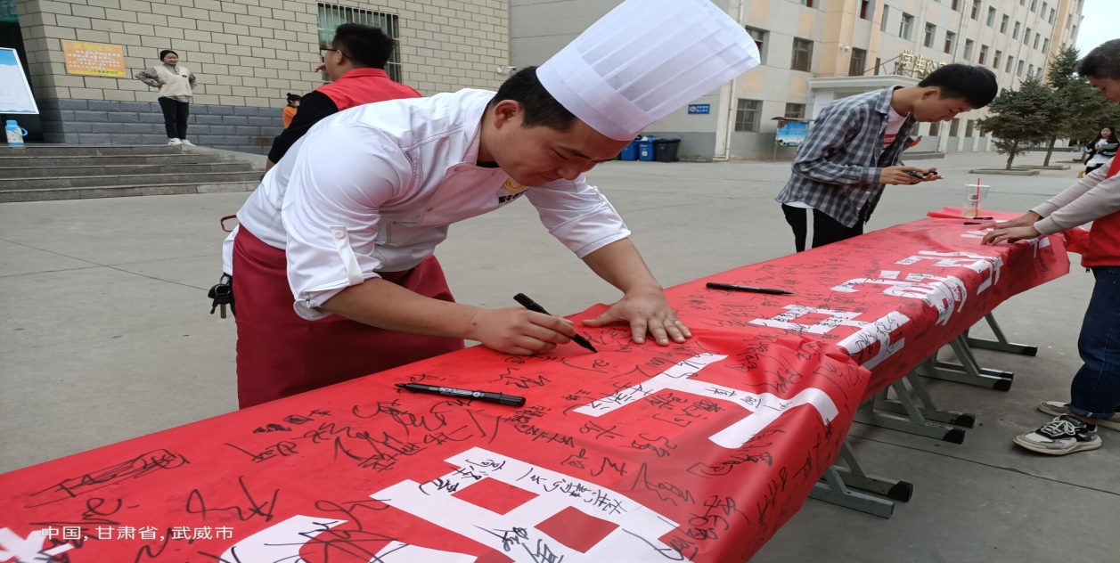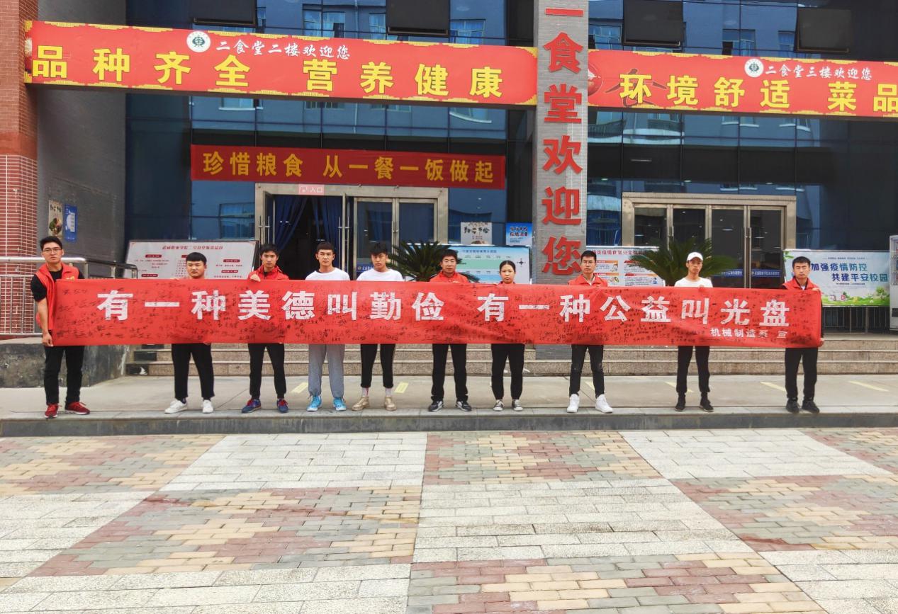 為了大力加強廣大師生節(jié)約糧食和光盤行動的意識,培養(yǎng)文明就餐習(xí)慣,2020年9月16日武威職業(yè)學(xué)院機械制造系在學(xué)校一、二號兩個食堂門口舉行了以“節(jié)約糧食儉以養(yǎng)德”為主題的簽名活動。