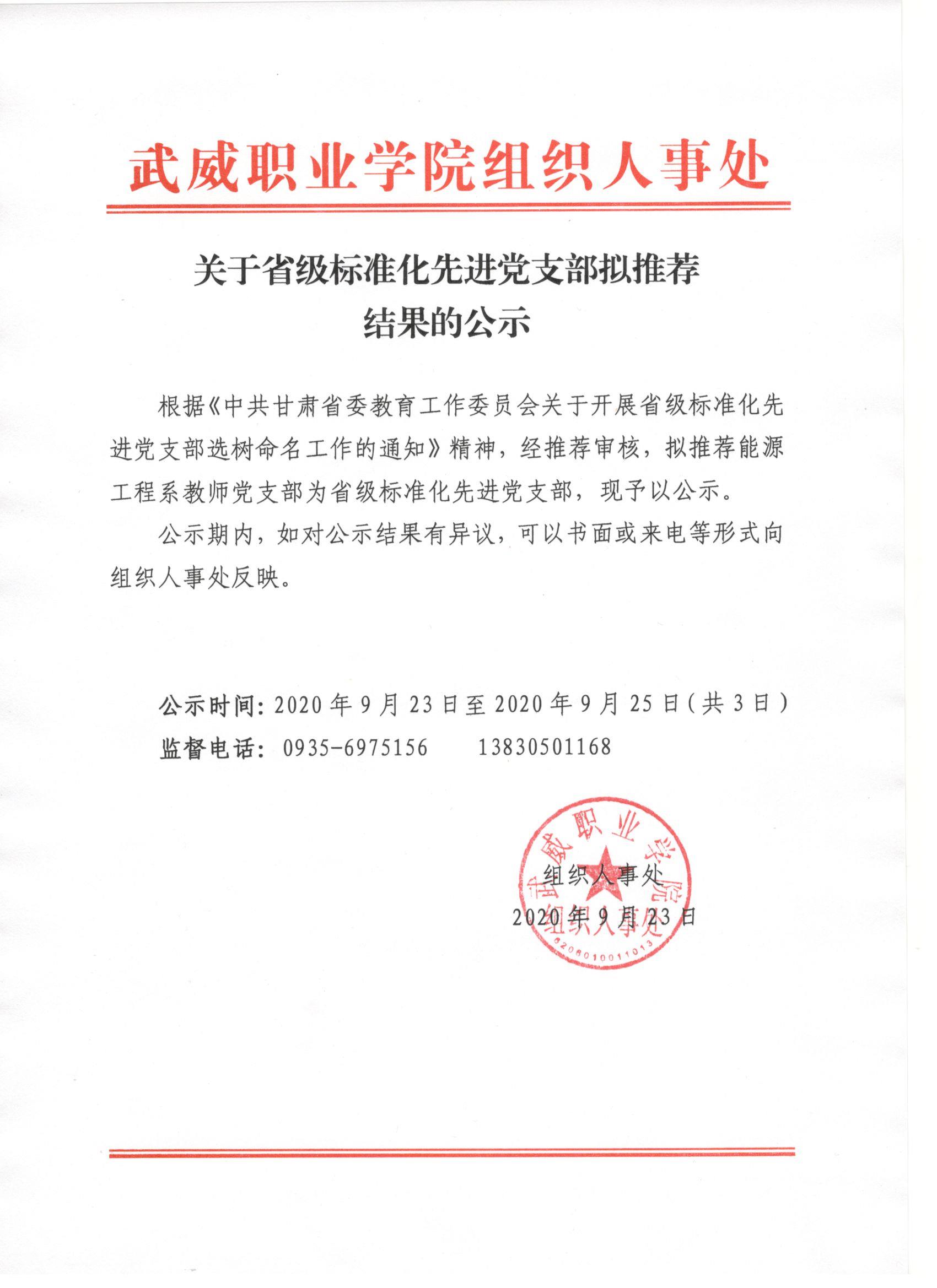 關于省級標準化先進黨支部擬推薦結(jié)果的公示