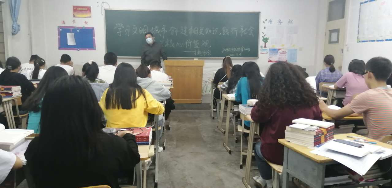 此次的主題班會,各班班主任引導各班同學講文明,樹新風,厲行節(jié)約,踐行社會主義核心價值觀,助力文明校園和文明城市創(chuàng)建,加深了同學們對社會主義核心價值觀內容的認識和領悟。
