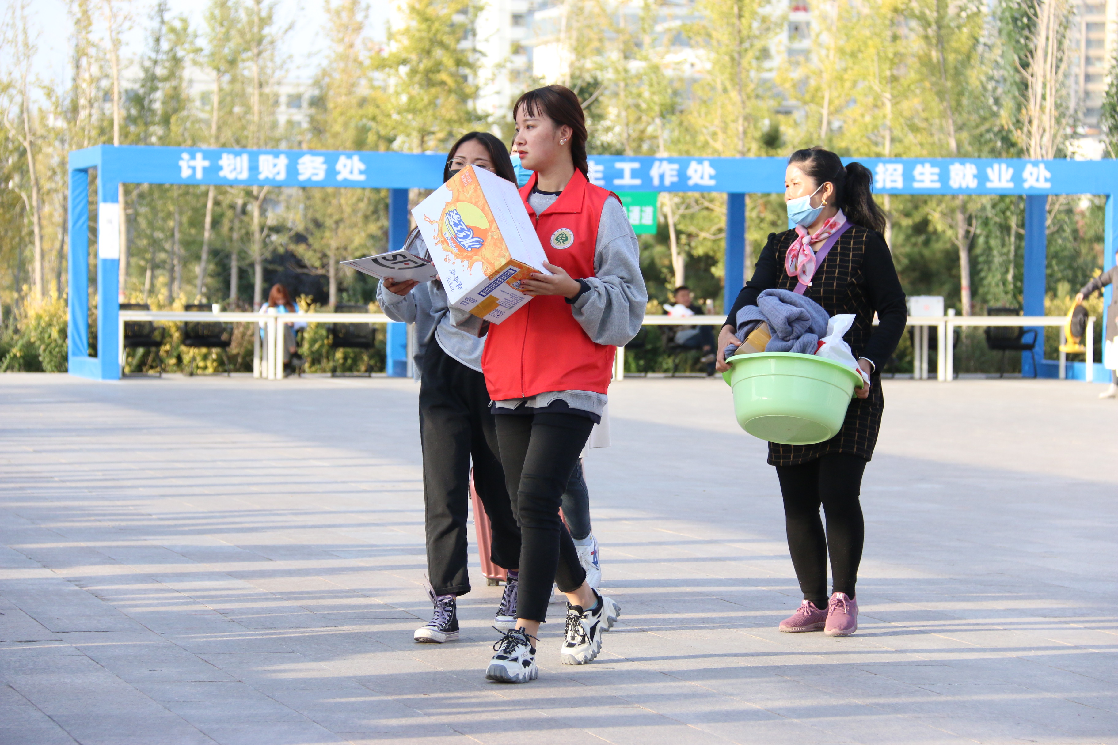 各院系的迎新人員熱情洋溢,各司其職,服務(wù)周到;工作人員耐心細(xì)致地為新生辦理入學(xué)手續(xù),提供咨詢服務(wù);學(xué)生志愿者成為一道溫暖而亮麗的風(fēng)景線,他們引領(lǐng)著新生和家長(zhǎng)穿梭在校園內(nèi),為他們介紹校園情況、解答各種問題。