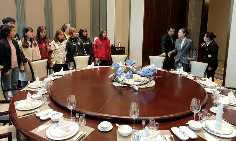 最后,姚盈老師對藍(lán)海御華大飯店提供的參觀機(jī)會和熱心招待表示感謝,并對此次參觀學(xué)習(xí)做了總結(jié);他表明作為學(xué)姐,羅列列能夠晉升為總監(jiān),這種成功正是得益于她堅(jiān)持不懈的精神、扎實(shí)的專業(yè)理論以及高超的專業(yè)技能,并由此告訴同學(xué)們要敢于走進(jìn)企業(yè),將所學(xué)課程運(yùn)用到實(shí)踐當(dāng)中,在學(xué)生時(shí)代就要培養(yǎng)自己堅(jiān)強(qiáng)的毅力以及非凡的能力,只有這樣,才能在工作中以不變應(yīng)萬變,成長為能夠服務(wù)社會的優(yōu)秀青年!