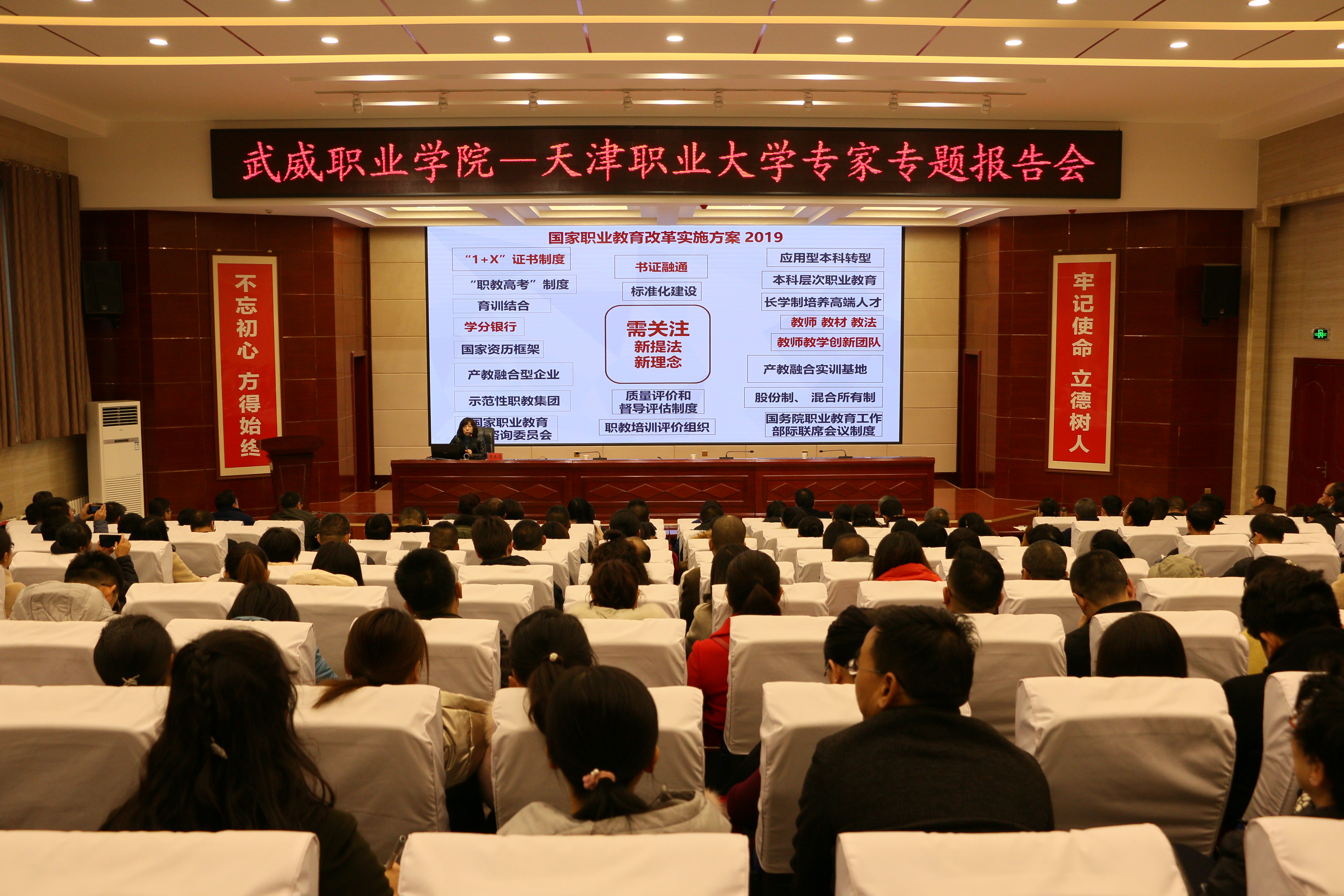 11月20日,武威職業(yè)學(xué)院“綠洲講壇”第27期在學(xué)院菁英廳舉行,本期活動邀請到天津職業(yè)大學(xué)汽車學(xué)院院長李晶華作主題為“《國家職業(yè)教育改革實施方案》解讀”的報告。學(xué)院領(lǐng)導(dǎo)班子、中層干部、教師代表220余人參加了報告會。本期講壇由學(xué)院黨委書記、院長趙明主持。