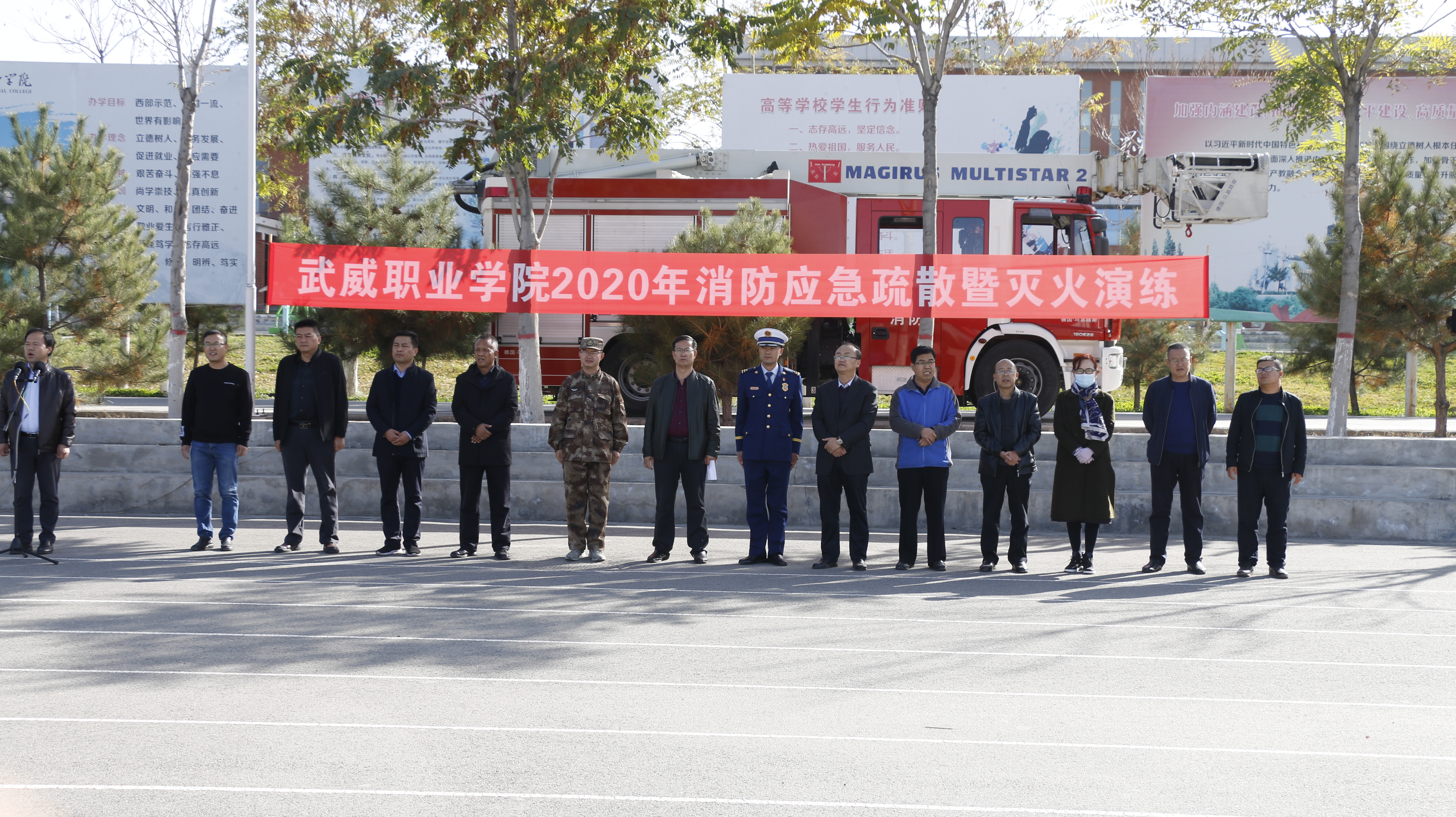 10月21日下午,學(xué)院聯(lián)合涼州區(qū)消防救援中隊(duì)舉行了2020年消防應(yīng)急疏散和滅火演練活動(dòng)。學(xué)院副院長(zhǎng)張開禮、涼州區(qū)消防救援中隊(duì)指導(dǎo)員李躍興出席活動(dòng),保衛(wèi)處、學(xué)生工作處、各教學(xué)院系負(fù)責(zé)同志現(xiàn)場(chǎng)觀摩演練,約4300多名2020級(jí)新生參加了演練?。