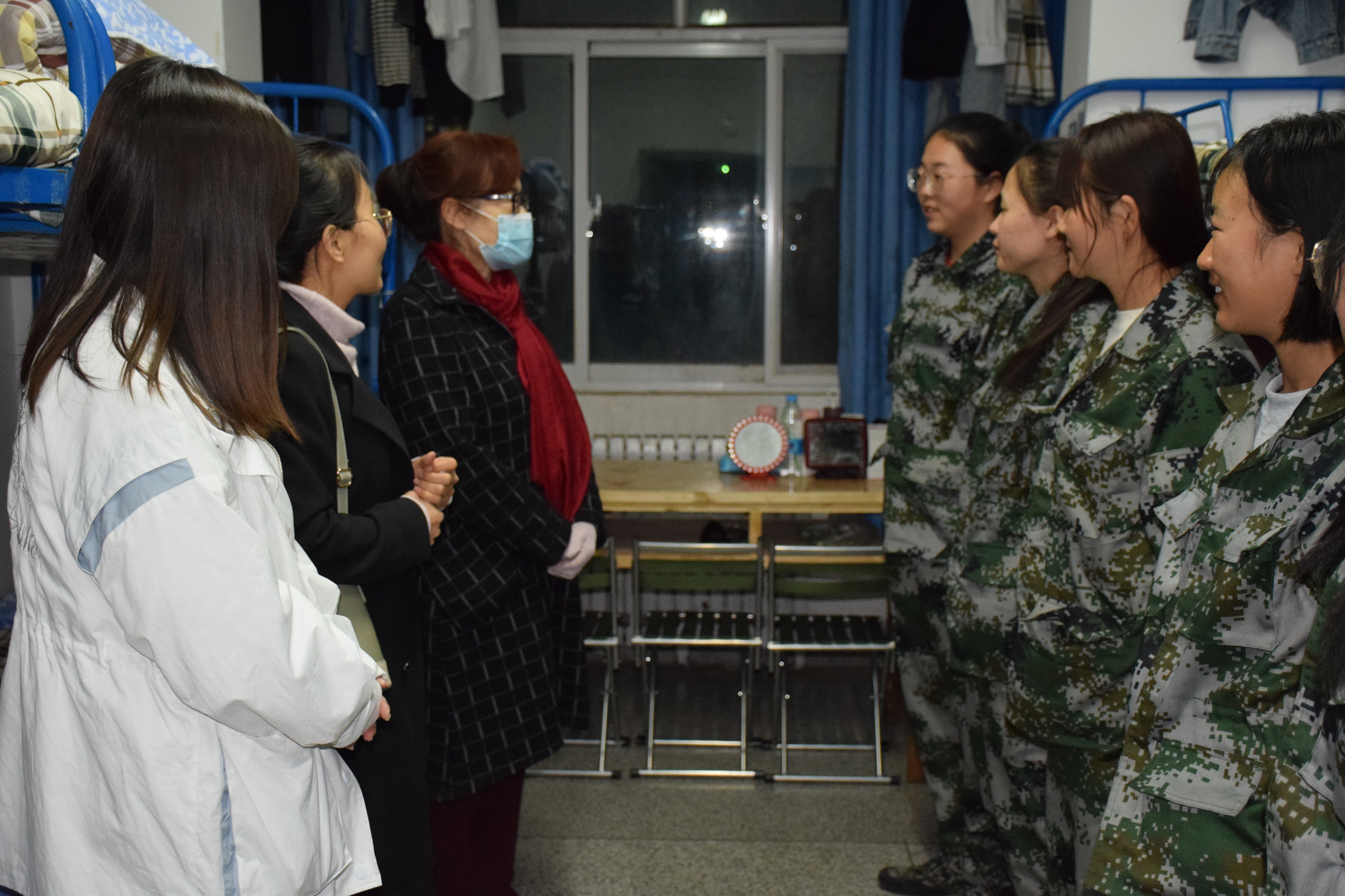 ????? 10月14日晚,現(xiàn)代農(nóng)業(yè)技術(shù)系全體新生班主任在系黨總支書記晏素珍同志的帶領(lǐng)下,深入新生宿舍走訪慰問(wèn)新生。