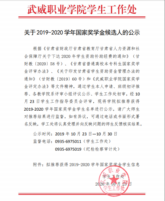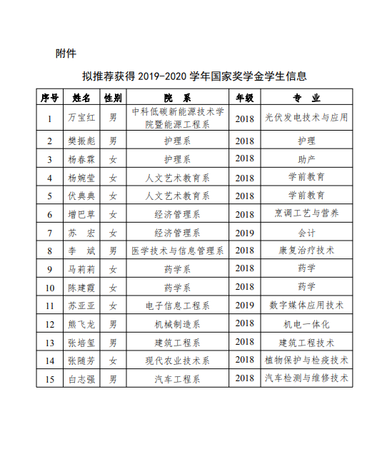 關(guān)于2019-2020學(xué)年國家獎學(xué)金候選人的公示