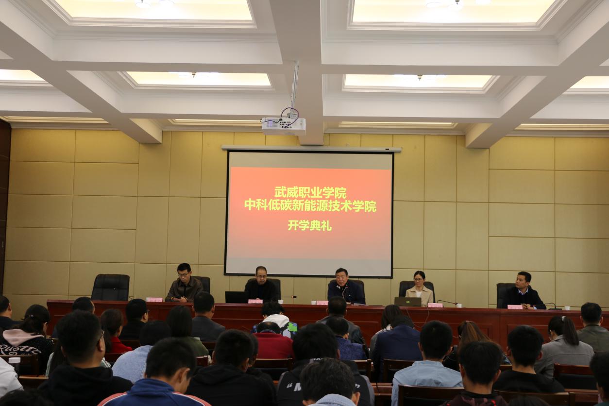 ??10月29日下午,中科低碳新能源技術(shù)學(xué)院在行樹樓北側(cè)報(bào)告廳召開2020級新生開學(xué)典禮。中國科學(xué)院先進(jìn)核能創(chuàng)新研究院高級教育顧問、中科低碳新能源技術(shù)學(xué)院院長楊存忠教授,武威職業(yè)學(xué)院黨委副書記、中科低碳新能源技術(shù)學(xué)院副院長翟存祥教授,中國科學(xué)院上海應(yīng)用物理研究所副研究員、中科低碳新能源技術(shù)學(xué)院院長助理米麗娟博士,中科低碳新能源技術(shù)學(xué)院合作辦學(xué)辦公室主任、能源工程系黨組織書記胡建宏教授,中科低碳新能源技術(shù)學(xué)院合作辦學(xué)辦公室副主任、能源工程系主任黃述杰副教授,中科低碳新能源技術(shù)學(xué)院全體教師及2020級新生參加了此次大會(huì)。會(huì)議由黃述杰主任主持。