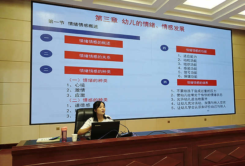 本次培訓(xùn)對象為來自民勤、古浪、天??h和涼州區(qū)民辦幼兒園教師中未取得教師資格證的人員共計120人,培訓(xùn)內(nèi)容為筆試、面試內(nèi)容輔導(dǎo),經(jīng)驗交流和答疑互動。8月17日—18日為期2天的培訓(xùn)工作中,何毅圍繞“幼兒教師資格考試面試技巧和教學(xué)能力測試”作專題輔導(dǎo)培訓(xùn),付成榮、秦娜分別圍繞“學(xué)前兒童教育學(xué)以及教育法規(guī)”、“學(xué)前兒童心理學(xué)”作了專題輔導(dǎo)培訓(xùn)。學(xué)院教師講課認真嚴謹,為參訓(xùn)學(xué)員作了全面、詳實的知識講授、經(jīng)驗指導(dǎo)和解疑答惑,培訓(xùn)工作圓滿結(jié)束,得到了市教育局的充分肯定和參訓(xùn)學(xué)員的一致好評。