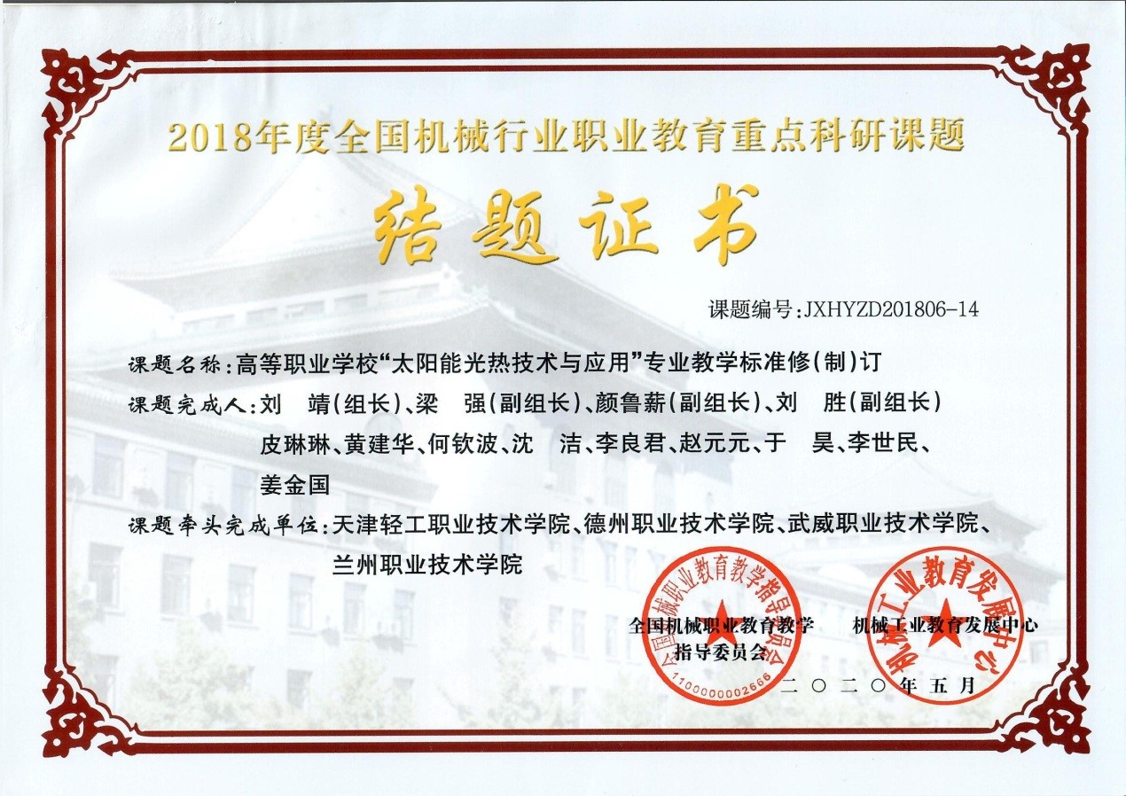“太陽能光熱技術(shù)與應(yīng)用”專業(yè)國家教學(xué)標(biāo)準(zhǔn)通過專家評審