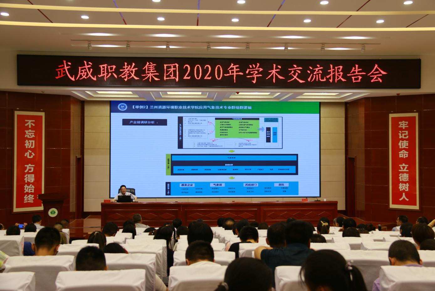 7月11日上午,學(xué)院在大學(xué)生活動中心菁英廳舉辦“第35期綠洲講壇暨雙高專業(yè)群建設(shè)專題講座”,邀請到蘭州資源環(huán)境職業(yè)技術(shù)學(xué)院黨委委員、副院長宋元文教授作“基于專業(yè)群發(fā)展的新時代高職院校建設(shè)”的專題報告。學(xué)院黨委書記、院長趙明主持報告會,黨委副書記翟存祥,黨委委員、副院長田迎春、何毅、張開禮、王守云,武威職教集團成員單位代表,學(xué)院各部門和教學(xué)院系負責(zé)人、專業(yè)負責(zé)人和教師代表共計200余人參加了報告會。