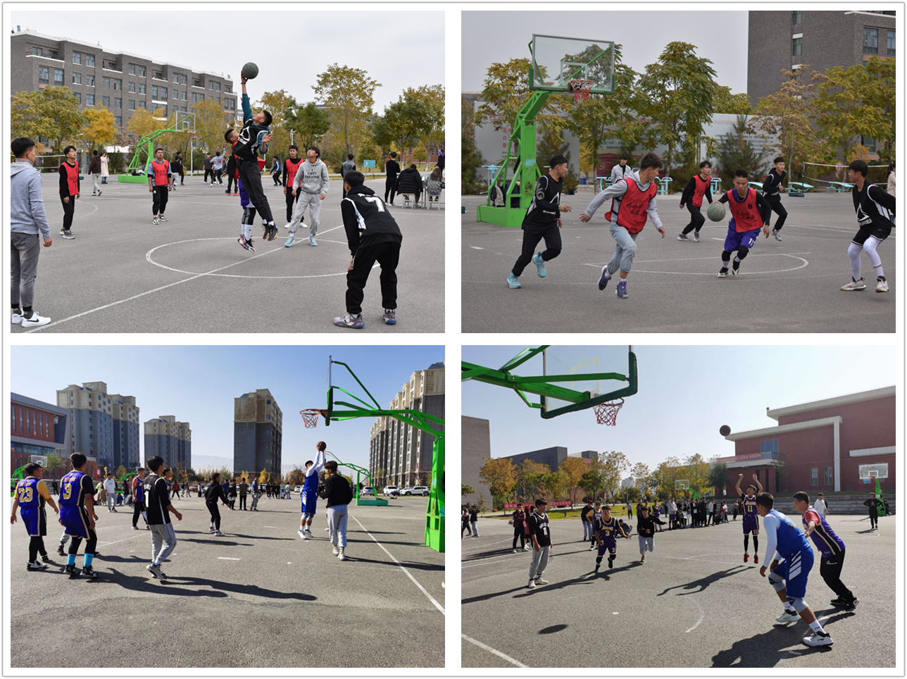 籃球比賽共有12支隊伍參加比賽,在賽場上運(yùn)動員積極拼搏、全力以赴。場下的同學(xué)們努力為運(yùn)動員吶喊助威,為運(yùn)動員們注入了強(qiáng)大的精神動力。
