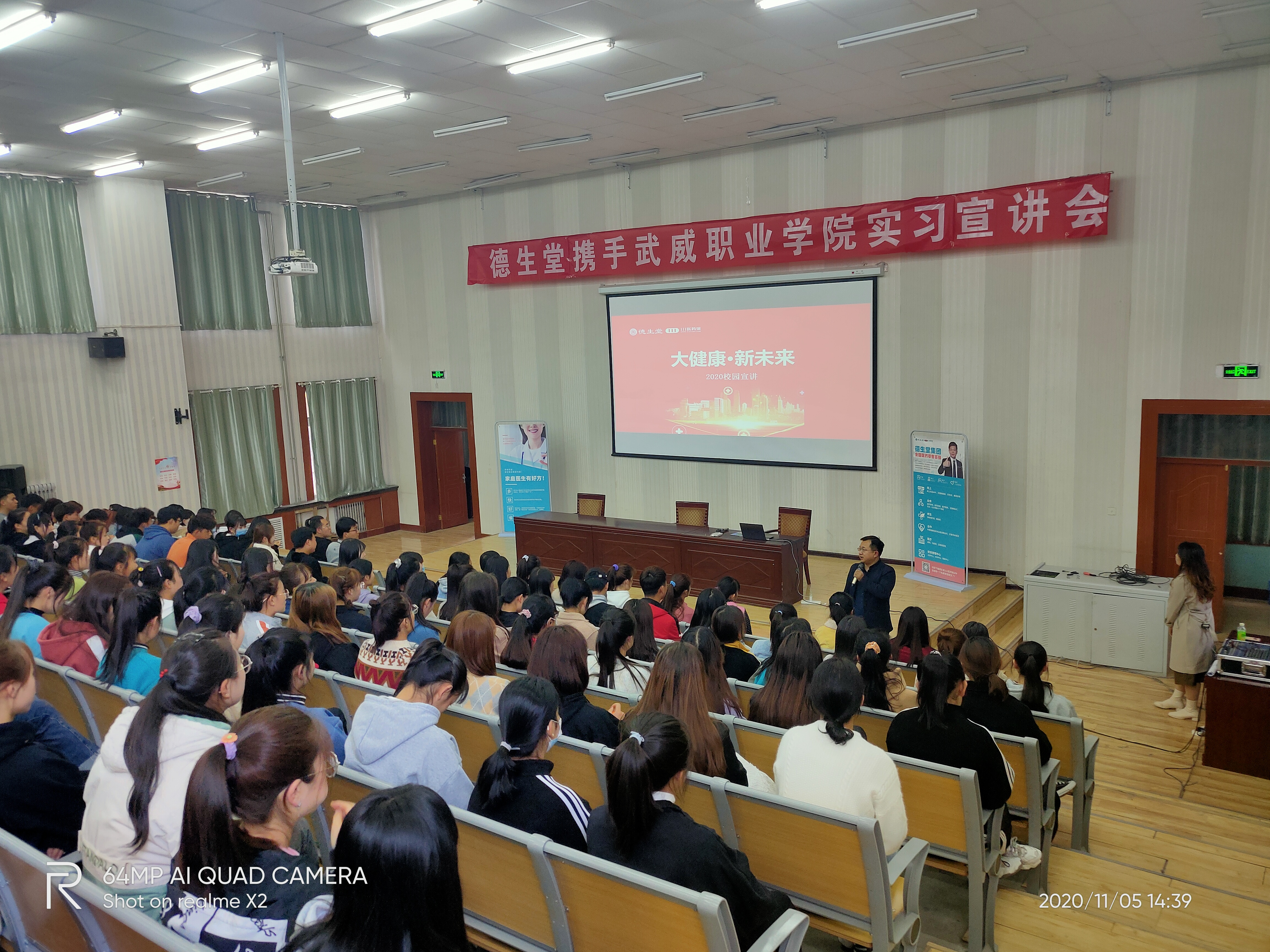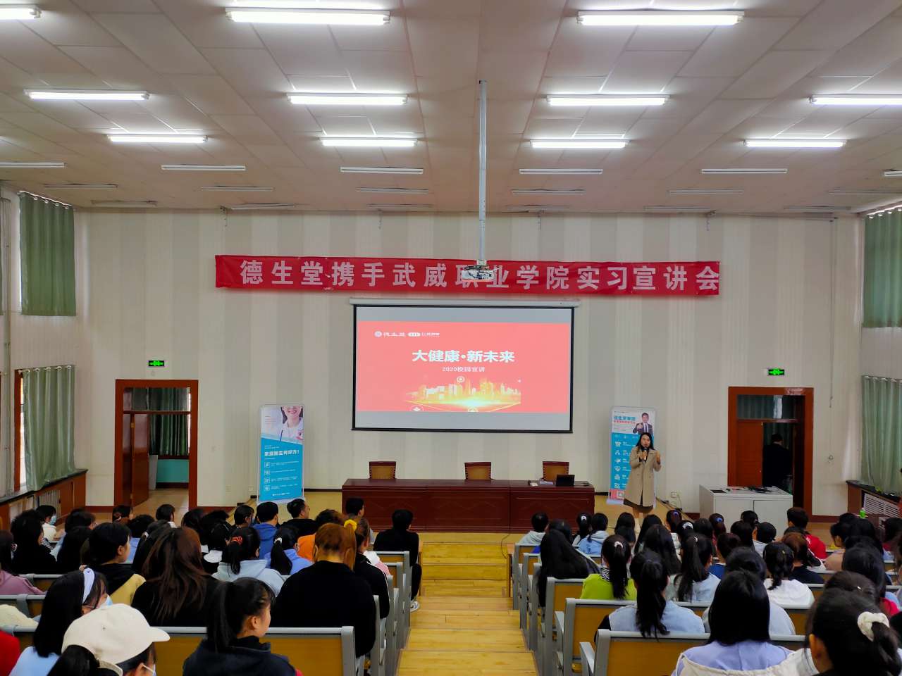 2020年11月5日,武威職業(yè)學(xué)院藥學(xué)系攜手德生堂在正德廳舉辦實(shí)習(xí)宣講會(huì)。藥學(xué)系黨總支書記、主任魏潤(rùn)明、藥學(xué)系副主任楊建美、德生堂集團(tuán)武威區(qū)域經(jīng)理呂福英及2021屆172名畢業(yè)生參加宣講會(huì)。