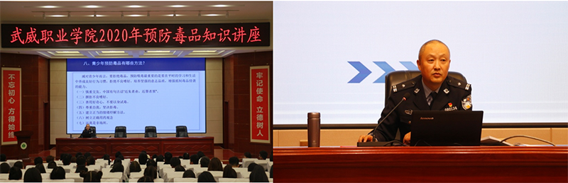 為進(jìn)一步加強(qiáng)學(xué)院毒品預(yù)防教育工作,不斷提高學(xué)生識(shí)毒、防毒、拒毒意識(shí),2020年11月6日下午,學(xué)院團(tuán)委邀請武威市公安局禁毒支隊(duì)政委、市禁毒辦副主任杜興林在菁英廳作了題為“健康人生 綠色無毒”預(yù)防毒品專題知識(shí)講座,師生代表共200余人聆聽講座。