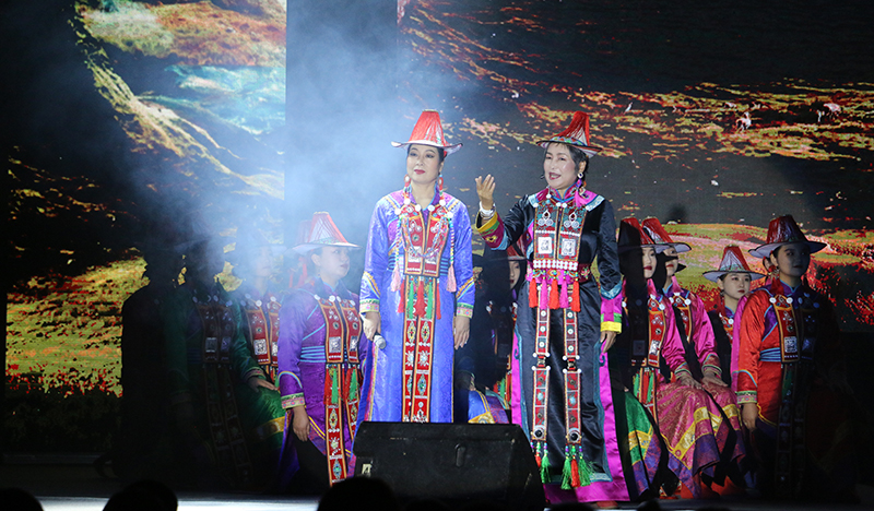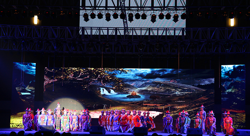 原創(chuàng)合唱音詩《薩娜瑪珂》取材于甘肅省獨(dú)有的少數(shù)民族裕固族的同名史詩,以裕固族民族女英雄為人物形象,以裕固族民族音樂為音樂基調(diào),以感人至深的故事情節(jié)為創(chuàng)意線索,全劇采用四部合唱、女高音領(lǐng)唱、男中音領(lǐng)唱以及朗誦等富有獨(dú)特表現(xiàn)力的藝術(shù)形式,生動再現(xiàn)了薩娜瑪珂的壯美人生和傳奇故事。原生態(tài)的民族音樂、如詩如畫的舞美、濃郁的民族風(fēng)情,深深地感染了現(xiàn)場師生,贏得了陣陣熱烈的掌聲。