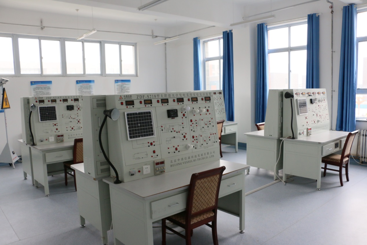 實訓功能:本實訓室擁有太陽能光伏發(fā)電系統(tǒng)實驗裝置8套。主要服務課程為光伏發(fā)電技術(shù)分析與應用、光伏材料的加工與檢測等。