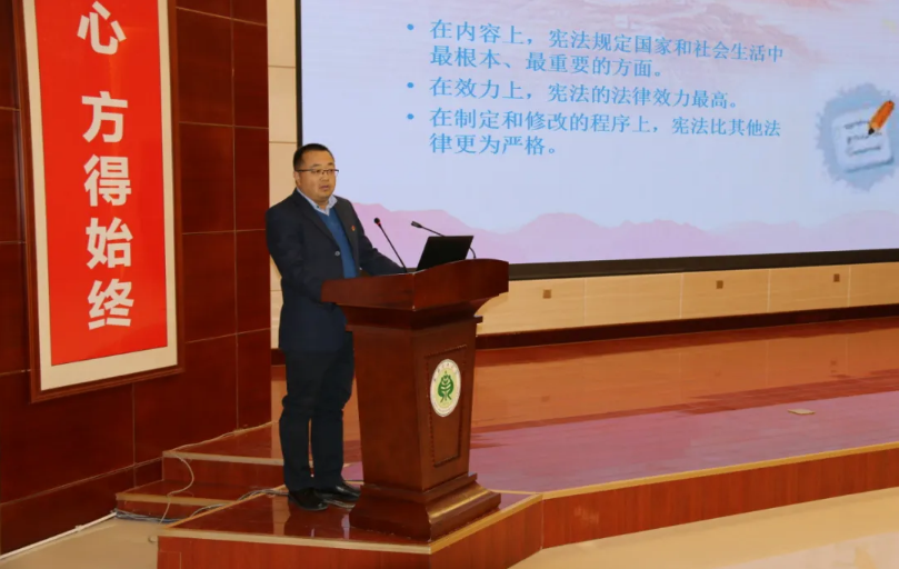 魏全民圍繞憲法的精神與要義重點講授了憲法的產(chǎn)生與發(fā)展歷史、現(xiàn)行的憲法原則、公民的基本權(quán)利和義務(wù)等內(nèi)容,讓同學(xué)們進一步了解憲法,懂得了尊崇憲法、學(xué)習(xí)憲法、遵守憲法、維護憲法、運用憲法的重要性。