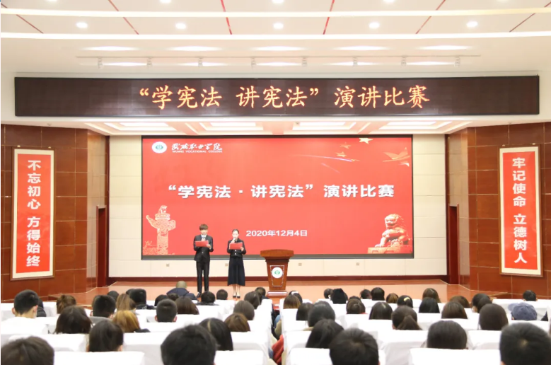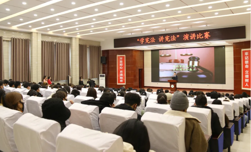 12月4日下午,學(xué)院“學(xué)憲法 講憲法”演講比賽于菁英廳舉行。學(xué)院黨委委員、副院長何毅出席活動。擔(dān)任此次比賽的評委是:宣傳統(tǒng)戰(zhàn)部部長魏全民,雙創(chuàng)中心副主任顏魯薪,學(xué)生工作處姚斌,省級普通話測試員、宣傳統(tǒng)戰(zhàn)部趙炯星,質(zhì)量管理辦公室馮文娟,院團委王冠群。各系輔導(dǎo)員、民法典伴我行主題手抄報比賽獲獎的25名同學(xué)及師生代表共220人參加活動。