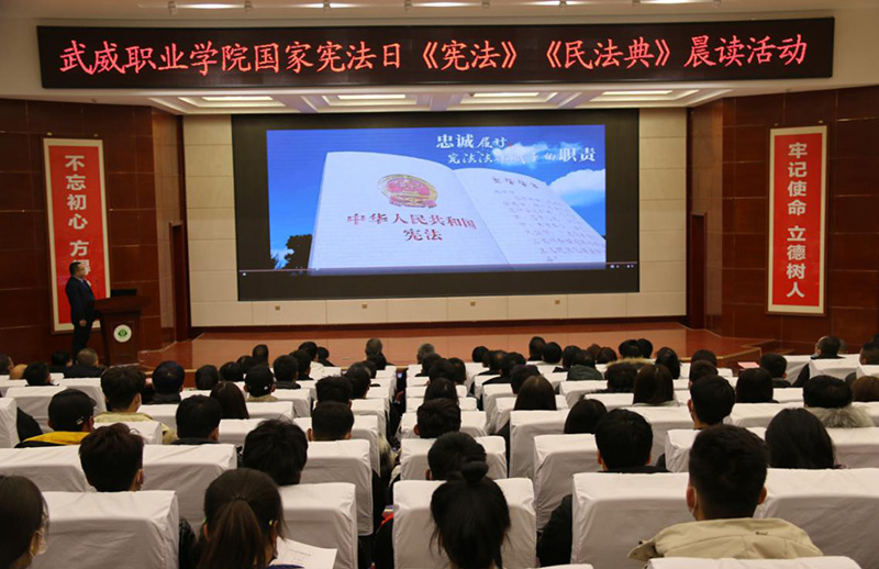 “本憲法以法律的形式確認(rèn)了中國(guó)各族人民奮斗的成果,規(guī)定了國(guó)家的根本制度和根本任務(wù),是國(guó)家的根本大法,具有最高的法律效力……” 在“12·4”國(guó)家第七個(gè)憲法日當(dāng)天,學(xué)院舉辦了“憲法、民法典晨讀”活動(dòng)。伴隨著朗朗的誦讀聲,在場(chǎng)師生莊嚴(yán)而肅穆地感受著憲法作為國(guó)家根本大法的神圣不可侵犯性。
