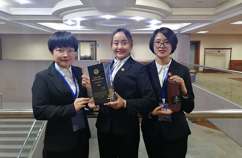 在上午進(jìn)行的初賽中,非法學(xué)組共有13個(gè)學(xué)校參加,前八名進(jìn)入決賽。我院三位選手在與兄弟學(xué)校的激烈角逐下,脫穎而出,以小組賽第二名、初賽第四名的成績(jī)輕松進(jìn)入決賽。下午的決賽中,面對(duì)更強(qiáng)大的對(duì)手,面對(duì)評(píng)委老師,三位選手始終面帶笑容、自信滿滿、密切配合,憑自己的努力、實(shí)力,發(fā)揮出她們的最好水平,個(gè)人答題毫無(wú)破綻、搶答過(guò)程頻頻得手、個(gè)人論述聲情并茂,獲得了評(píng)委的高度贊賞。經(jīng)過(guò)激烈的比拼,我院代表隊(duì)一路披荊斬棘,過(guò)關(guān)斬將,最終獲得非法學(xué)組金獎(jiǎng)(第一名),學(xué)院獲優(yōu)秀組織獎(jiǎng),羅茜獲得個(gè)人優(yōu)秀選手獎(jiǎng)。