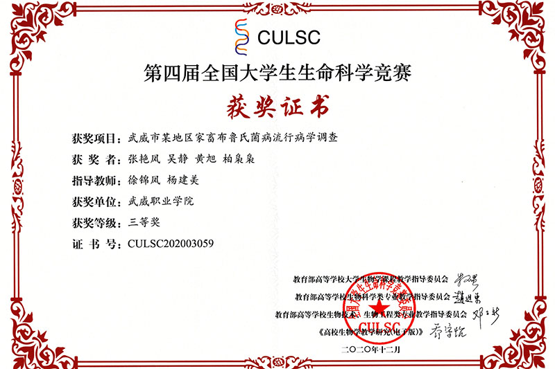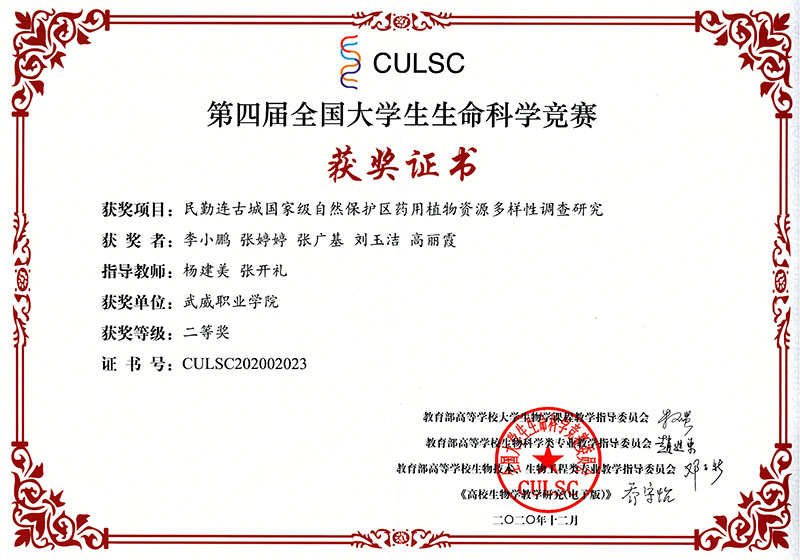 近日,第四屆全國大學(xué)生生命科學(xué)競賽落下帷幕,經(jīng)過激烈角逐,我院推薦參賽的兩個項目獲得全國二等獎三等獎,學(xué)院成為省內(nèi)獲得此次全國比賽獎項的唯一高職院校。在此前舉辦的甘肅賽區(qū)比賽中,我院兩個項目獲得甘肅省一等獎1項,二等獎1項,被推薦參加全國總決賽。此次獲得全國競賽獲獎不僅填補(bǔ)了我院學(xué)生在全國競賽中獲獎的空白,也為學(xué)院創(chuàng)建“雙高”院校增添了重要成果。