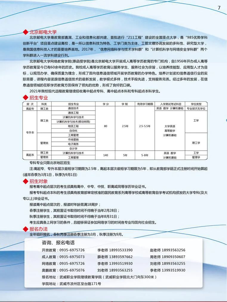 武威職業(yè)學(xué)院繼續(xù)教育學(xué)院2021年招生簡章