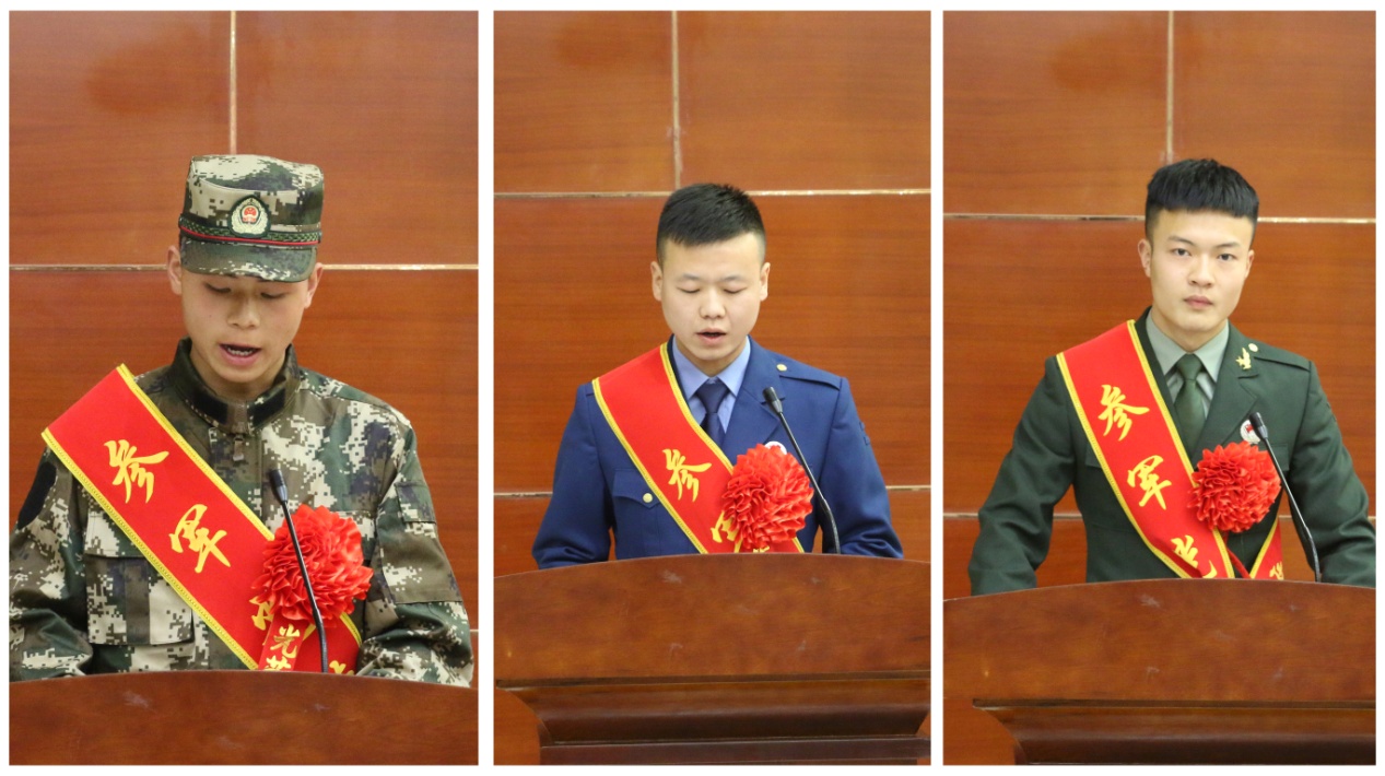大會(huì)上,高鵬堂宣讀了2021年春季入伍學(xué)生名單和近兩年退役復(fù)學(xué)學(xué)生名單;參會(huì)領(lǐng)導(dǎo)為應(yīng)征入伍的12名新兵佩戴紅花,贈(zèng)送紀(jì)念品,為退役復(fù)學(xué)學(xué)生代表佩戴紅花,頒發(fā)榮譽(yù)證書。