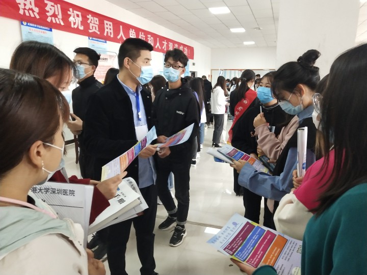 因疫情防控原因,此次招聘會采取“線上+線下”結(jié)合的方式,其中線上有喀什地區(qū)第一人民醫(yī)院、和田地區(qū)人民醫(yī)院、四川省江油市第四人民醫(yī)院、北京醫(yī)百科技有限公司等8家單位參會;線下有新疆新和縣人民醫(yī)院、新疆生產(chǎn)建設(shè)兵團(tuán)第五師醫(yī)院、新源縣人民醫(yī)院、恒升醫(yī)學(xué)科技股份有限公司、武威幸業(yè)養(yǎng)老中心、金昌八冶頤養(yǎng)醫(yī)院、蘭州惠仁堂藥業(yè)有限公司等23家單位參會;共有來自省內(nèi)外的31家醫(yī)療相關(guān)單位參加了本次招聘會,提供了1100多個就業(yè)崗位,基本滿足學(xué)院醫(yī)學(xué)類專業(yè)畢業(yè)生的就業(yè)需求。