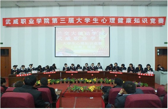 此次比賽歷時一個月,分為初賽和決賽兩部分。全院13個系和蘭交大能動學(xué)院代表隊參加了初賽的角逐,最終蘭交大能動學(xué)院、電子信息工程系、護(hù)理系、藥學(xué)系、外語系、農(nóng)經(jīng)系六支代表隊進(jìn)入決賽。競賽分必答題、搶答題、風(fēng)險題、觀眾互動四個環(huán)節(jié),內(nèi)容涉及心理理論知識、心理保健常識、心理科普知識等,融趣味性、教育性、普及性于一體。在比賽開始之前,各參賽隊一一向大家作了別出心裁的介紹,并喊出自己隊的參賽口號。比賽中,臺上選手們“八仙過海,各顯其能”,展現(xiàn)了他們雄厚的實力,隊員踴躍發(fā)言,積極搶答,臺下親友團(tuán)搖旗吶喊,為選手加油,高潮迭起。現(xiàn)場始終洋溢著緊張、熱烈、和諧的氣氛。最終,護(hù)理系代表隊以他們精彩出色的表現(xiàn)奪得一等獎,能動學(xué)院代表隊、外語系代表隊獲得二等獎,藥學(xué)系、電信系、農(nóng)經(jīng)系代表隊獲得三等獎。