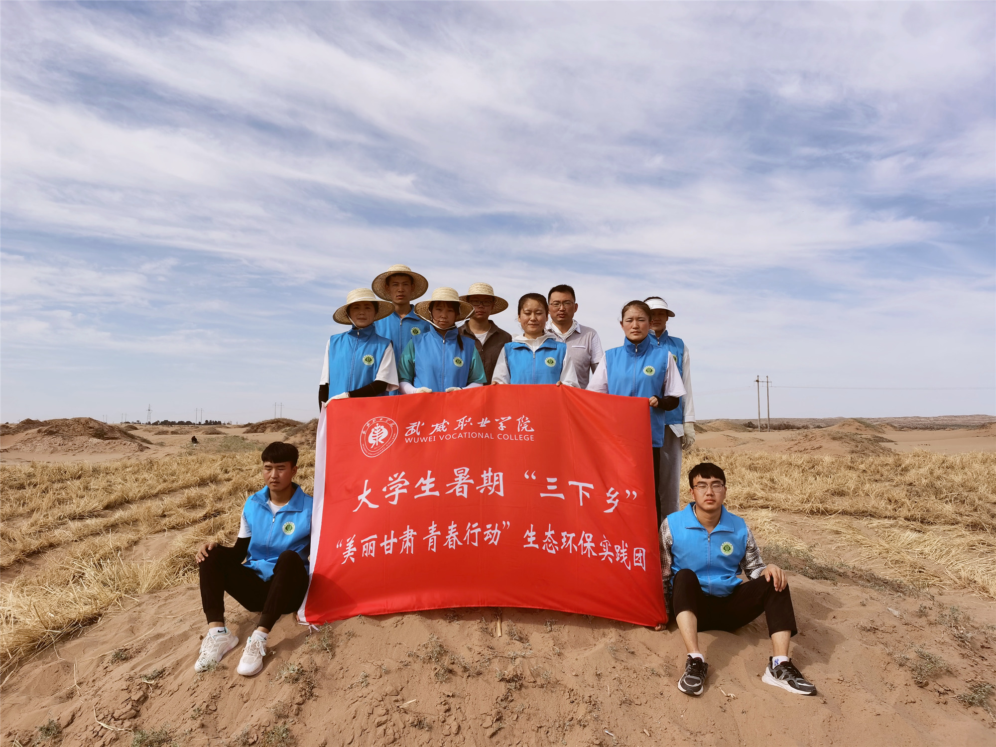 為深入學(xué)習(xí)貫徹習(xí)近平總書記生態(tài)文明建設(shè)重要戰(zhàn)略思想,引導(dǎo)和幫助學(xué)院青年學(xué)生積極融入武威市創(chuàng)建文明城市,以實(shí)際行動致力于荒漠化治理、踐行兩山理論。2021年7月15日至21日,在武威職業(yè)學(xué)院團(tuán)委、教學(xué)院系指導(dǎo)下,來自7個專業(yè)、1名留學(xué)生所組成的“美麗甘肅 青春行動”青少年生態(tài)環(huán)保行動暑期社會實(shí)踐小隊(duì)奔赴武威市三縣一區(qū)部分地區(qū)進(jìn)行“綠色夢想·戈壁荒漠‘智’富行動”暑期社會實(shí)踐。
