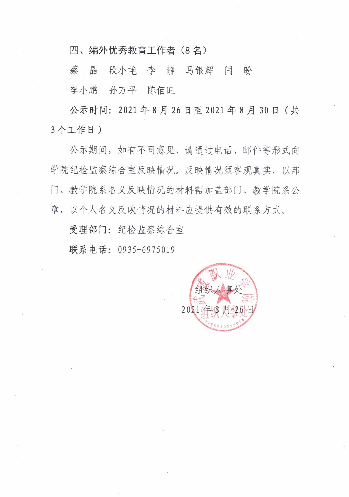 關(guān)于對2021年甘肅省“園丁獎”、武威市教育工作先進個人評選對象推薦結(jié)果…