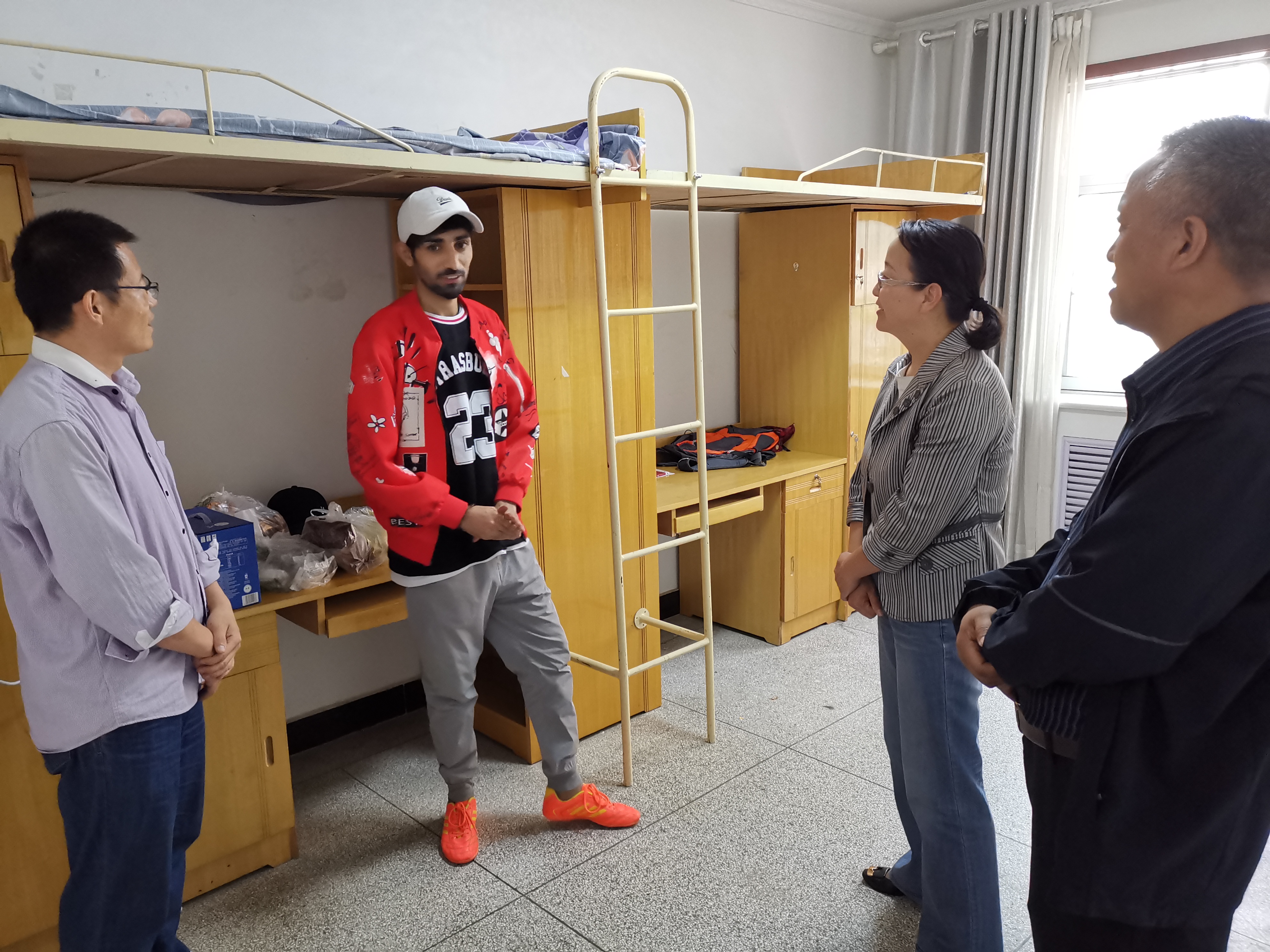 田迎春先后深入2019級(jí)、2021級(jí)來(lái)華留學(xué)生宿舍、廚房,查看、了解留學(xué)生住宿、生活情況,向留學(xué)生送上慰問(wèn)品。在留學(xué)生宿舍,田迎春與留學(xué)生親切交談,關(guān)切詢問(wèn)留學(xué)生日常生活、專業(yè)學(xué)習(xí)、漢語(yǔ)學(xué)習(xí)等情況。她向留學(xué)生簡(jiǎn)要介紹了中秋節(jié)、國(guó)慶節(jié)的來(lái)歷、風(fēng)俗及意義,留學(xué)生們對(duì)中國(guó)傳統(tǒng)文化表現(xiàn)出濃厚興趣;她指出,留學(xué)生背井離鄉(xiāng)來(lái)華求學(xué),遇到困難在所難免,但要堅(jiān)定信心,學(xué)院會(huì)盡力滿足留學(xué)生學(xué)習(xí)、生活的需要;她鼓勵(lì)留學(xué)生積極主動(dòng)融入學(xué)院大家庭,廣交朋友,在融入、融合過(guò)程中體會(huì)在華學(xué)習(xí)生活的樂(lè)趣;她希望留學(xué)生珍惜寶貴的來(lái)華學(xué)習(xí)的機(jī)會(huì),不僅要學(xué)好理論知識(shí),而且要學(xué)好操作技能,不僅要學(xué)好專業(yè)知識(shí),而且要學(xué)好優(yōu)秀中華文化,講好中國(guó)故事,向世界展示真實(shí)的中國(guó),爭(zhēng)做知華友華愛(ài)華的留學(xué)生,爭(zhēng)做中國(guó)與世界各國(guó)友好的使者。