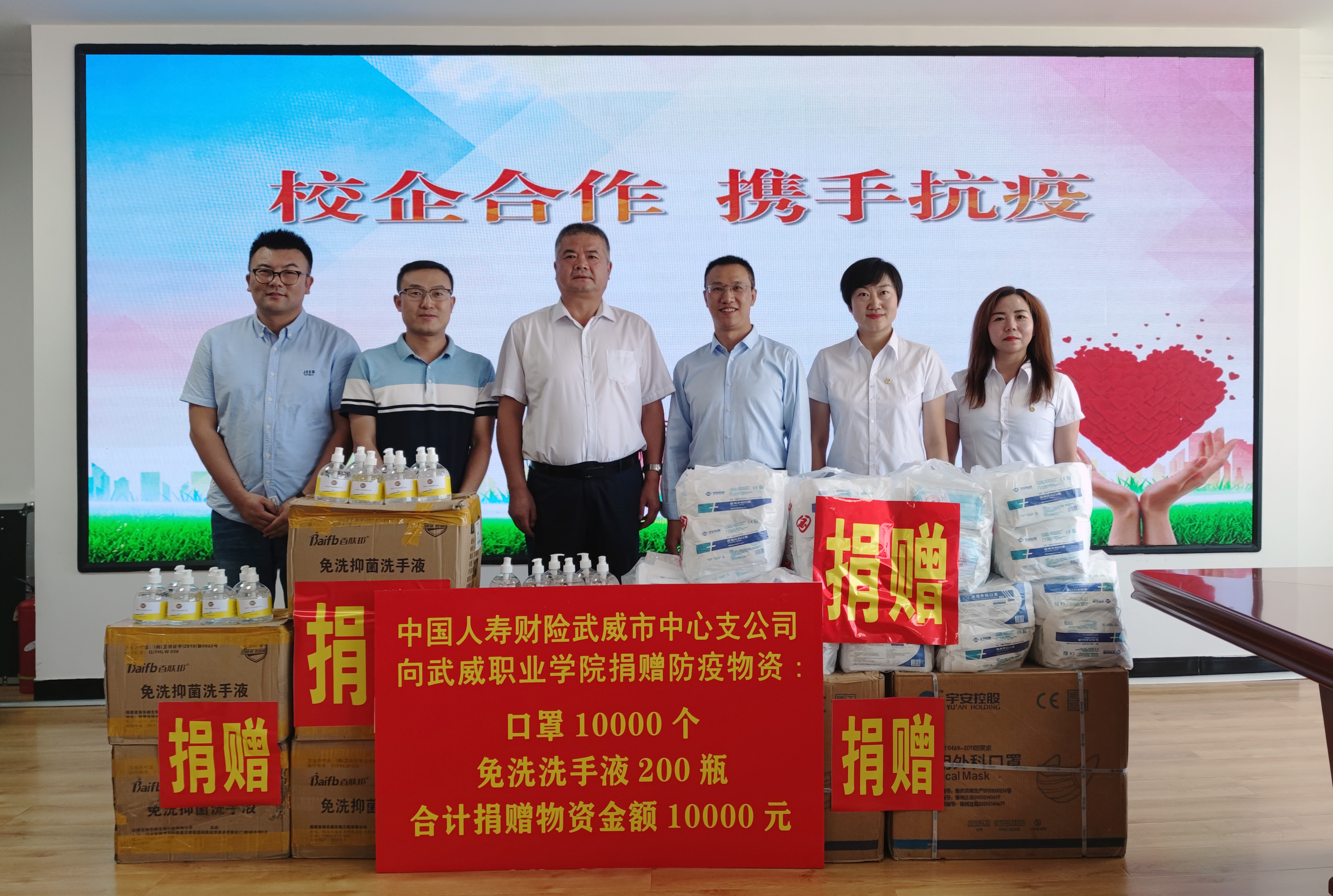 中國(guó)人壽財(cái)險(xiǎn)武威市中心支公司向?qū)W院捐贈(zèng)防疫物資