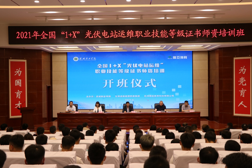 為貫徹落實(shí)《國(guó)家職業(yè)教育改革實(shí)施方案》,穩(wěn)步推進(jìn)“1+X證書”制度試點(diǎn)工作,提高職業(yè)院校教師參與職業(yè)技能等級(jí)培訓(xùn)、評(píng)價(jià)的能力。6月25日-6月30日,學(xué)院聯(lián)合評(píng)價(jià)組織機(jī)構(gòu)杭州瑞亞教育科技有限公司和甘肅省新能源職教集團(tuán)舉辦的全國(guó)“1+X”光伏電站運(yùn)維職業(yè)技能等級(jí)證書中級(jí)師資培訓(xùn)班圓滿完成。6月25日學(xué)院在菁英廳舉行開班儀式,學(xué)院副院長(zhǎng)張開禮、杭州瑞亞教育科技有限公司院校合作事業(yè)部總經(jīng)理桑寧如、蘭州交通大學(xué)新能源學(xué)院碩士生導(dǎo)師楊捷媛博士、來(lái)自全國(guó)院校的28名骨干教師以及中科低碳新能源技術(shù)學(xué)院師生代表共220人參加開班儀式。開班儀式由院黨委委員、副院長(zhǎng)張開禮主持。
