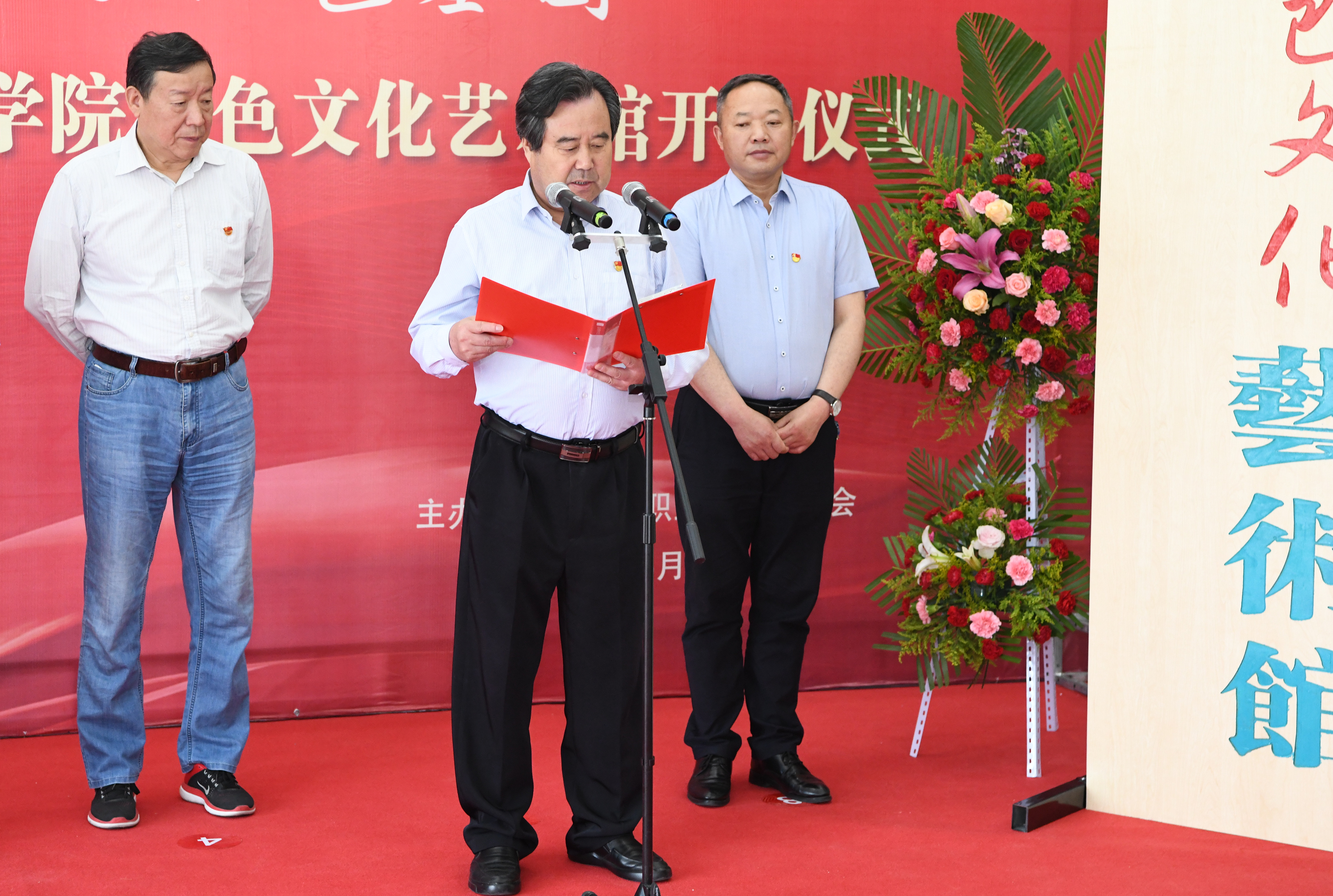 黨委書記、院長(zhǎng)趙明在致辭中表示,在全國上下熱烈慶祝中國共產(chǎn)黨建黨100周年、深入開展黨史學(xué)習(xí)教育之際,我們迎來王大臣書法作品展開展暨武威職業(yè)學(xué)院紅色文化藝術(shù)館開館,這既是學(xué)院慶祝建黨100周年、開展黨史學(xué)習(xí)教育重要活動(dòng),也是學(xué)院“雙高計(jì)劃”院校建設(shè)的重要成果。