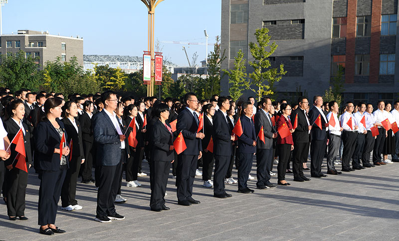 奮斗正當(dāng)時(shí),青春獻(xiàn)給黨!為慶祝新中國(guó)成立72周年,深入貫徹落實(shí)習(xí)近平總書記在慶祝建黨成立100周年大會(huì)上的重要講話精神,引導(dǎo)全院廣大青年大力弘揚(yáng)以愛(ài)國(guó)主義為核心的偉大民族精神,10月1日早上,學(xué)院在圖書館前廣場(chǎng)舉辦“請(qǐng)黨放心,強(qiáng)國(guó)有我”主題升國(guó)旗儀式。學(xué)院全體院領(lǐng)導(dǎo)、中層干部代表、師生代表300余人參加活動(dòng)。