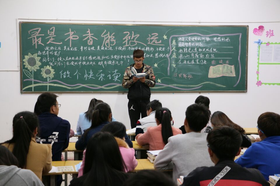 本次主題班會由各班班主任主持召開,同學們都積極的上臺向大家推薦了自己最喜歡看的書目。15級光伏班的蔡玉萍同學,為我們講述了冰心的散文集《夢》的故事,博得了大家的陣陣掌聲。