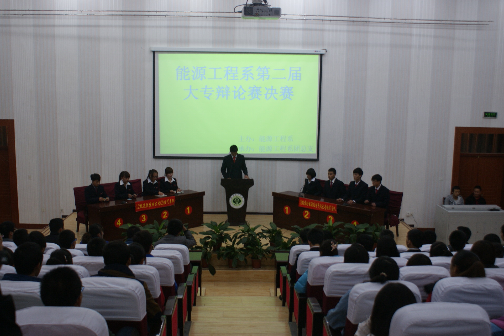 11月10日晚,能源工程系在東階梯教室成功舉辦了能源工程系第二屆大專(zhuān)生辯論賽三、四名和冠、亞軍爭(zhēng)奪戰(zhàn)。能源工程系全體老師和大一、大二學(xué)生共270人參加了本次決賽。本次比賽在班級(jí)初賽的基礎(chǔ)上有8支代表隊(duì)的32名選手代表班級(jí)參加了全系比賽,經(jīng)過(guò)系部復(fù)賽、半決賽兩個(gè)階段的激烈競(jìng)爭(zhēng),最終有四支代表隊(duì)晉級(jí)決賽。
