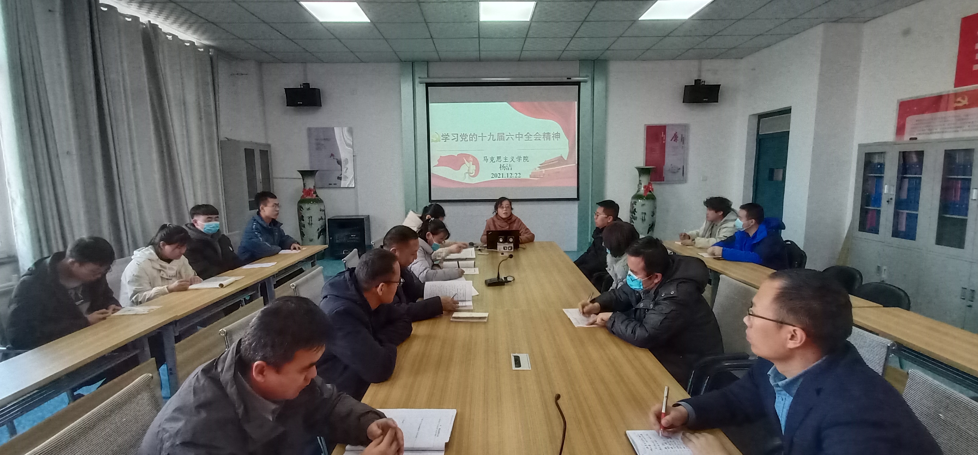 為深入學(xué)習(xí)貫徹落實(shí)黨的十九屆六中全會(huì)精神,12月22日下午,電子信息工程系邀請(qǐng)馬克思主義學(xué)院楊潔老師在明德樓409會(huì)議室進(jìn)行黨的十九屆六中全會(huì)精神專題宣講,電子信息工程系全體教師和學(xué)生入黨積極分子參加了宣講。