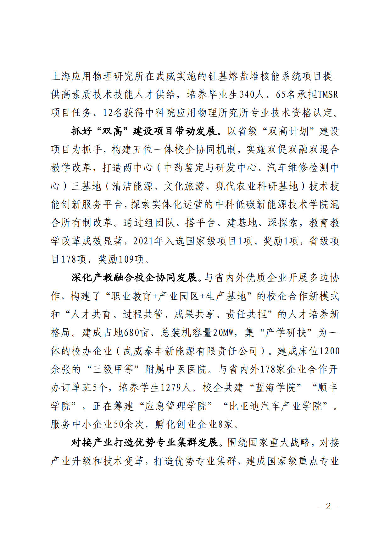 技能甘肅工作情況第28期:武威職業(yè)學院抓機遇強動能努力實現(xiàn)高質(zhì)量發(fā)展